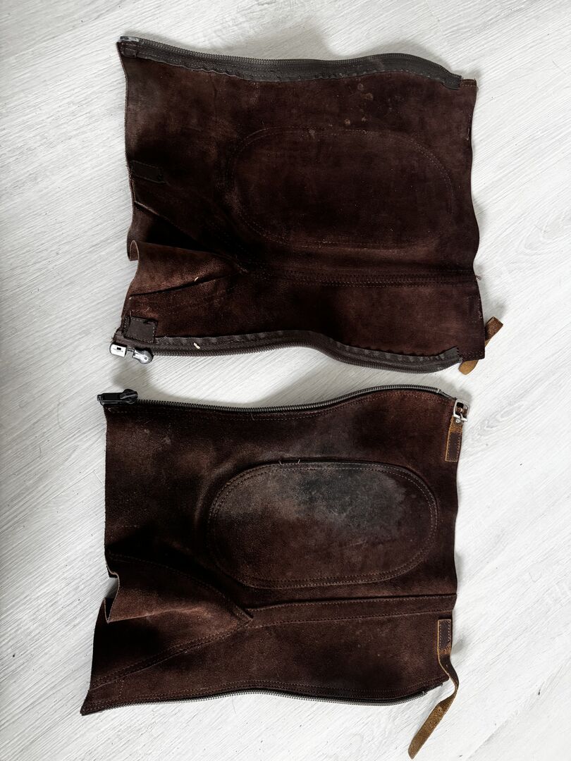 Leather chaps brown - Leather chaps in brown. In good condition. Measurements can be taken from the pictures. Only the foot straps have been cut off. Private sale therefore no guarantee or return. Shipping possible for a fee.