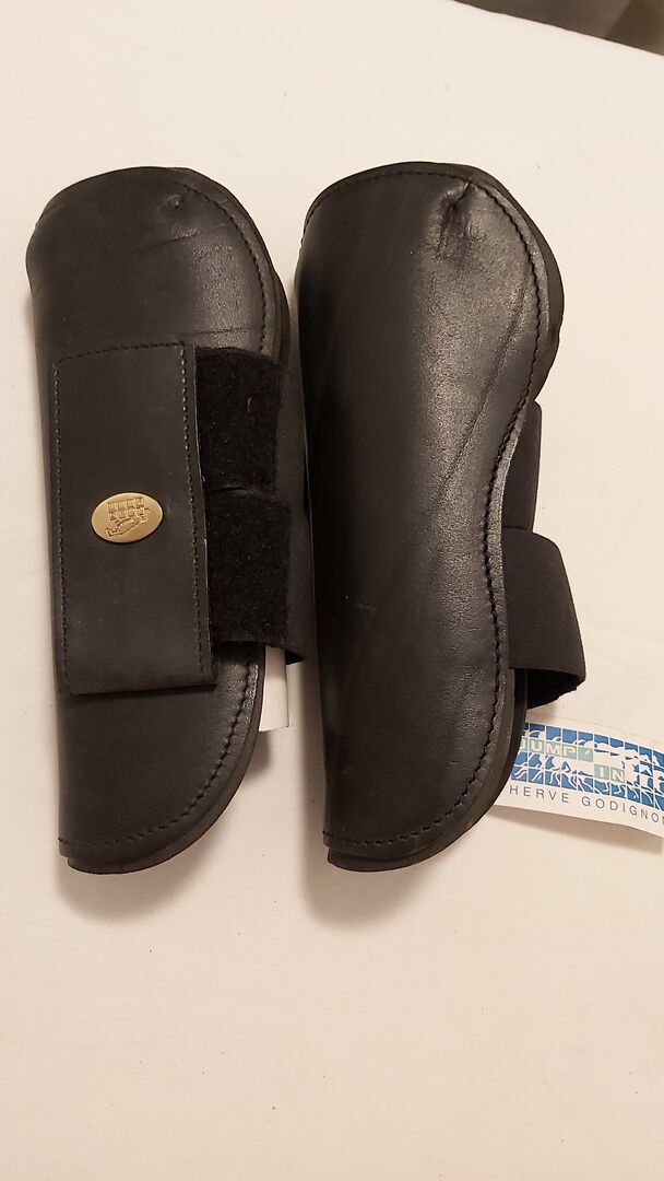 Leather jumping boots - Jumping boots for forelegs by Herve Godignon, leather, black, Velcro fasteners, for warmbloods.