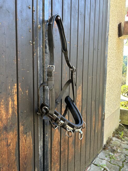 Well-kept leather cavesson with 2 joints and 3 rings for individual usage options