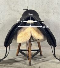 Leisure saddle for wide short horses 40 cm 17" KW 35, shipping on trial, Icelandic Haflinger COB - Short leisure saddle for wide horses, straight back, low withers - 17" seat - seat approx. 40 cm (total length 43 cm) - KW 35 - wide spine channel (see photos for dimensions). Shipped on approval (insured with DHL tracking number).