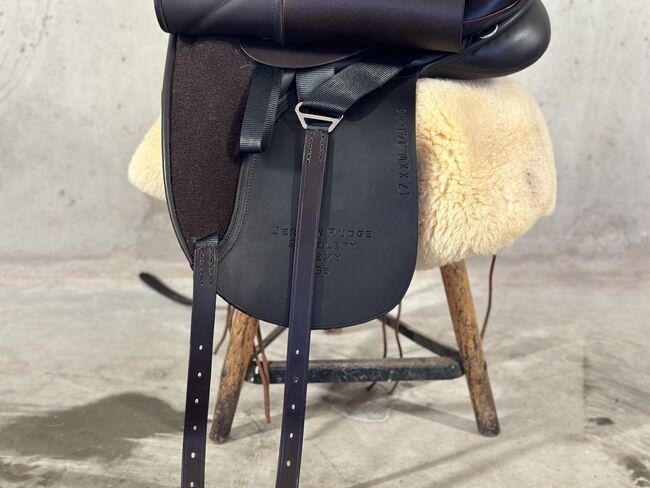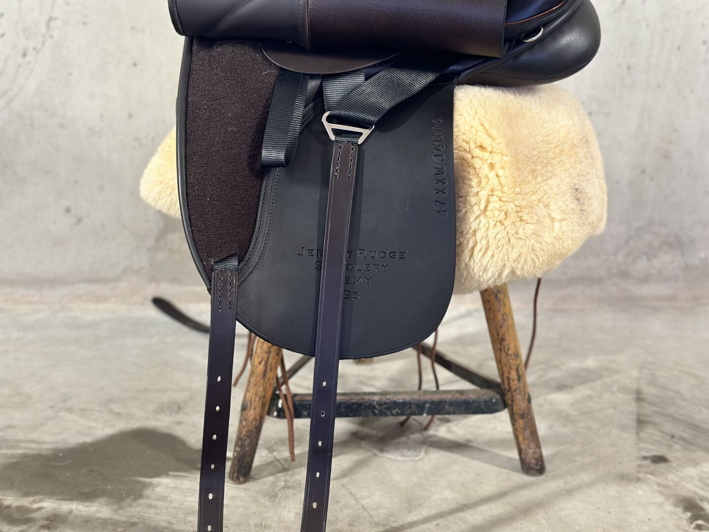 Manufacturer: Jeremy Rudge Saddlery England Model: G5 with pony tree As good as new demonstrator (2024), ridden 2x Color/leather: Brown buffalo (buffalo leather), cognac piping Padding: Sheep's wool Accessories: Extra D-rings, Velcro pads, stirrup bars, protective cover Price: €2,200 incl. VAT (new price €3,900)