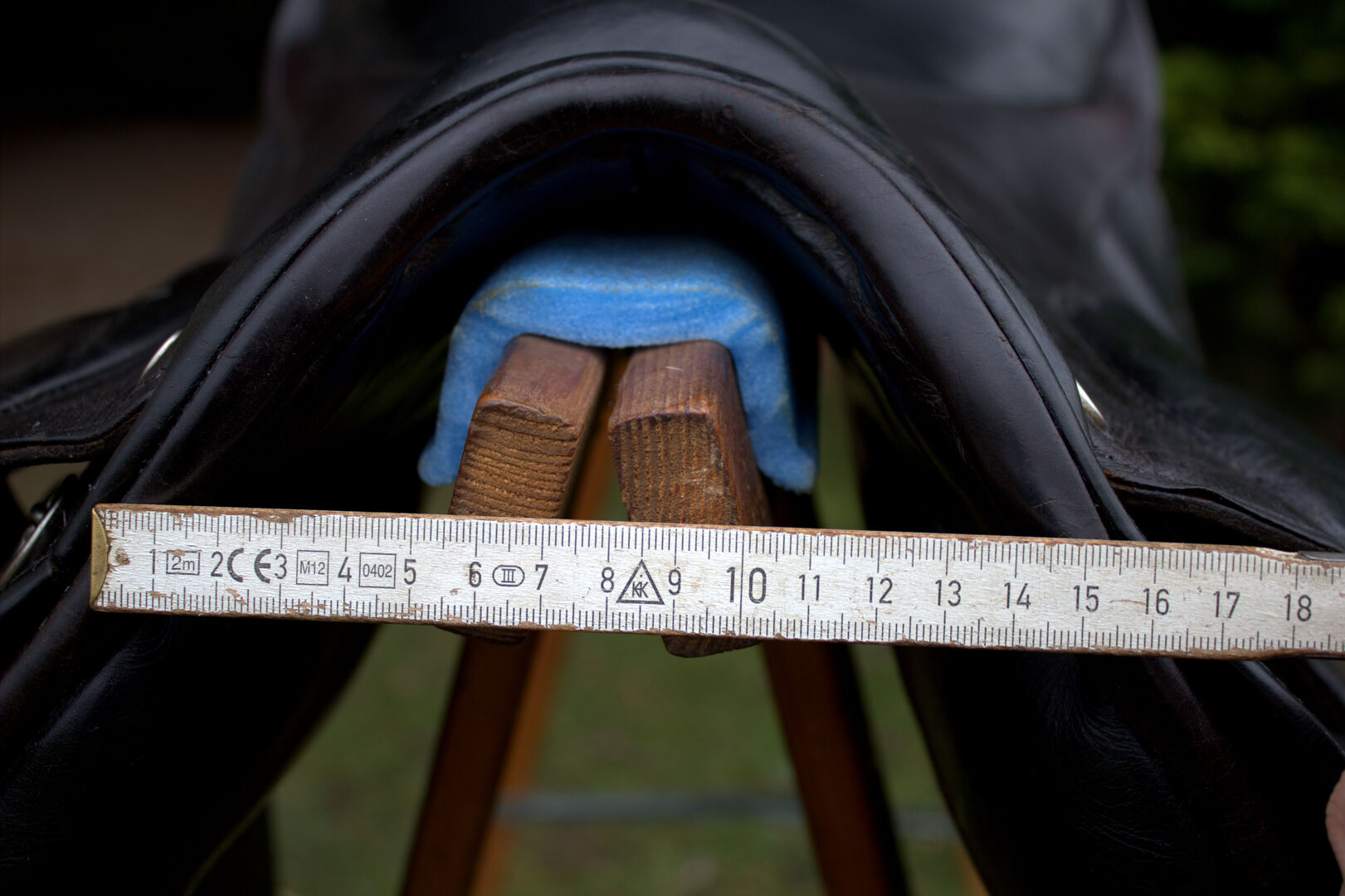 Seat size : 17,5 inch Chamber width 29 ( see photo ) The wool was renewed the year before last. The saddle has pronounced knee rolls which give a secure hold.