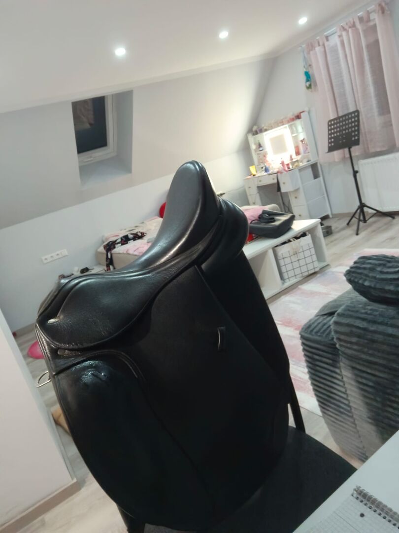 Letek saddle - I have a Letek VS saddle with focus on dressage with dressage blocks (exchangeable for jumping blocks) with 3 point girth and brand new girth straps for sale. It was mounted on our rather broad Hafi mare with very little wither. Currently KW 33, but can be adjusted by the saddler with other gullets at any time. The saddle has been freshly padded every year.