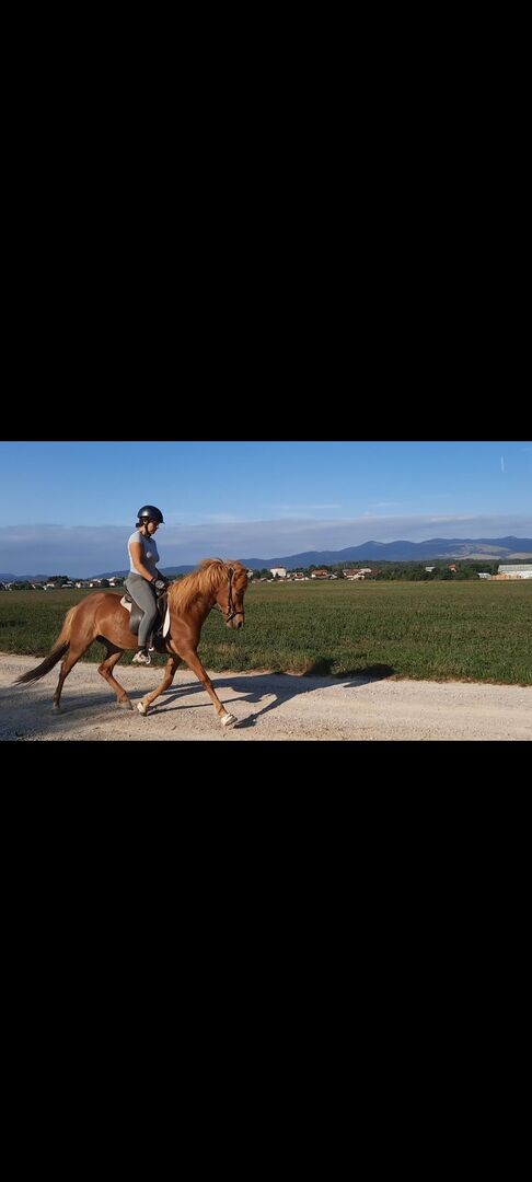 Ária is a charmy, tall, attractive young four-gaited promissing young mare. She is obedient, attentive, well trained in dressage, as well bullet proof outside. She responds to the seat and the voice extremely well. All her gaits always follow the rider's aids. In the saddle you will always feel in good care, because she is fine to ride and very easy to have in shape. She is soft in the neck and mouth and easy on the reins. She has a clear mind, good character and is very eager to learn. Currently in training in Slovenia. She is very healthy, no eczema, asthma, laminitis or metabolic problem. She has never had colic. She lives in mixed heard. She is a real fun horse to ride, one of these you look forward every day. And if her new owner would also like to breed, that is definitely a very good decision with these genetics! For more information, video you can contact me via Whatsapp +38631756859