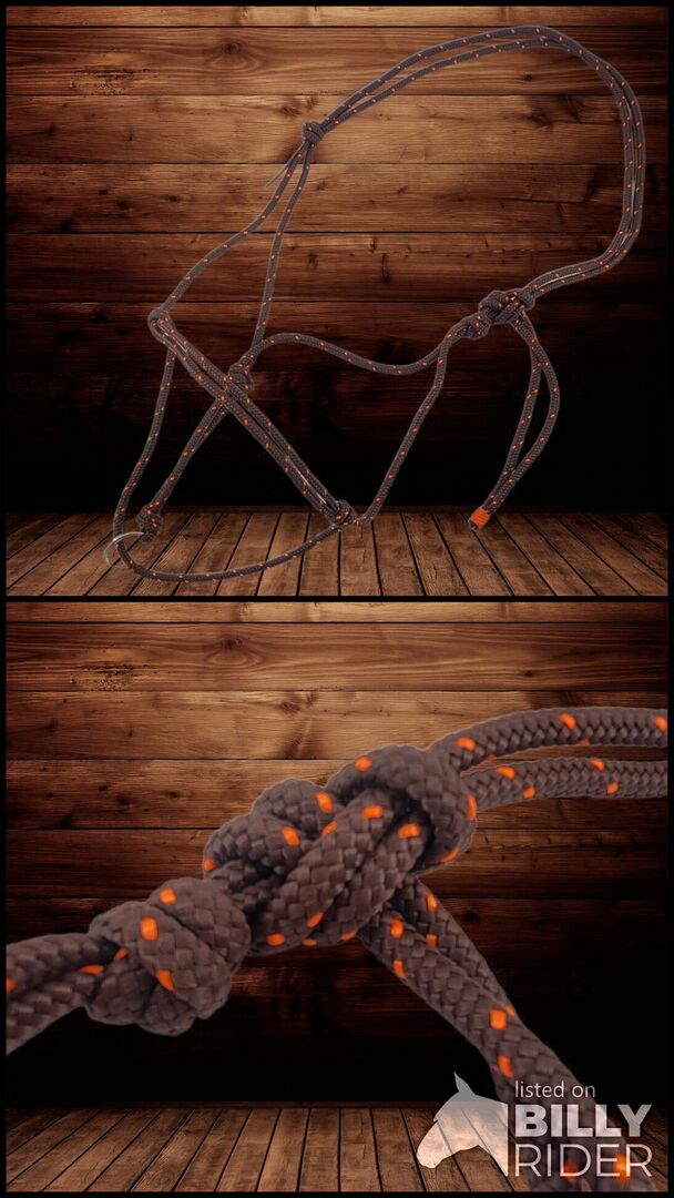 Lunging knot halter with ring Brown Orange Warmblood - Lunging knot halter, knot halter with ring, does not twist, stays in place even when moving, does not slip over the nose. Ideal for ground work, circus lessons, walking, horsemanship, lunging. Halter 6 mm thick