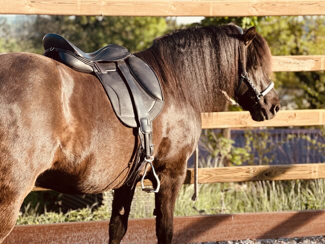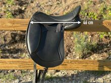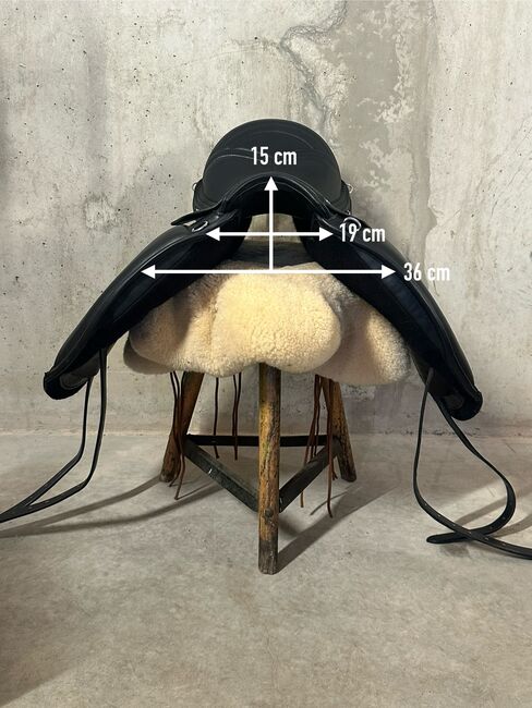 Luxury leisure saddle for wide horses 17.5 to 18" 43 cm KW 36, trial shipment - Monoblatt VS Dressage - Luxury leisure saddle - Extra/Extra/Wide - for very strongly built horses with low to medium withers - contact area approx. 43 cm, total length 46 cm, chamber width 36, wide spine channel (see photos for dimensions). Trial shipment possible.