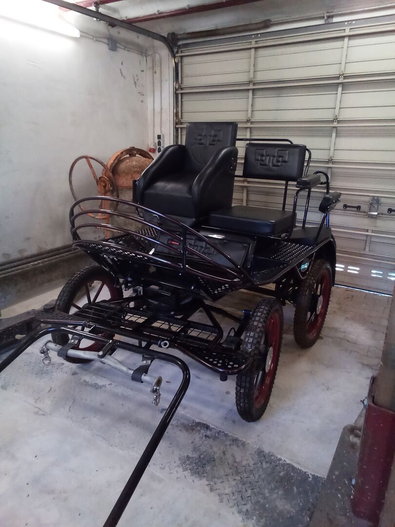 Marathon carriage/training carriage - Track width: 125 cm Trestle height: 125 cm Tire size: 19 inch Suitable for ponies up to final size. Single-horse scissors included, two-horse drawbar still packed, never used by me. The carriage has always been kept dry in the garage.