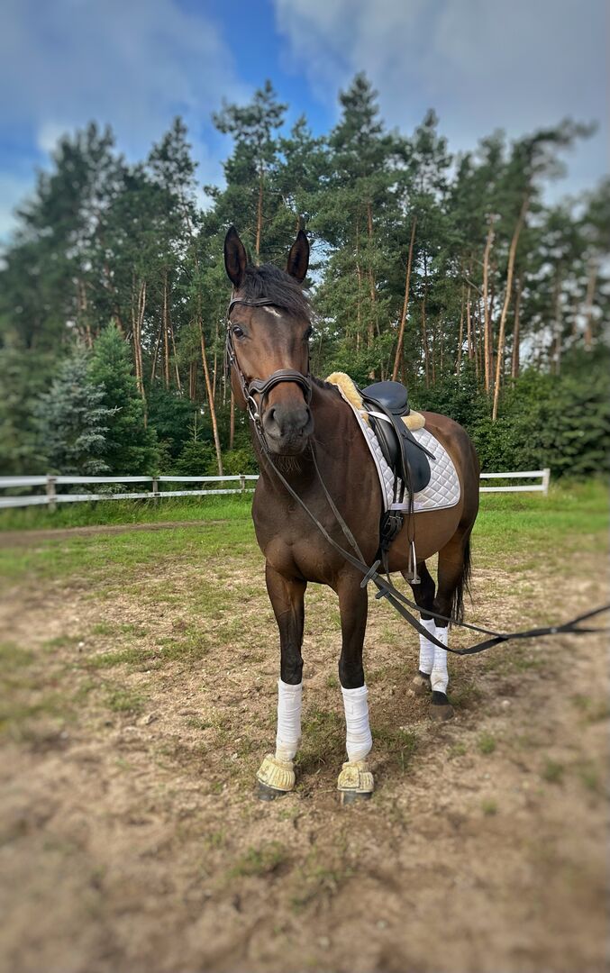 Mare with a heart - An elegant 5-year-old thoroughbred mare with a height of approx. 1.63 m is for sale. She is trained to A level in dressage. Lateral movements such as shoulder-in and leg yields are currently being worked on and are already reliable. She also shows interest, confidence and motivation in jumping, with further potential. She is friendly, people-oriented and respectful in daily contact. She is familiar with grooming, hoofing, loading and the farrier and masters them with confidence. Her three clear, smooth gaits make her a real eye-catcher, and her balanced character ensures that you quickly fall in love with her in daily contact. She can be ridden reliably and sensitively, even completely without rein aids (video available).