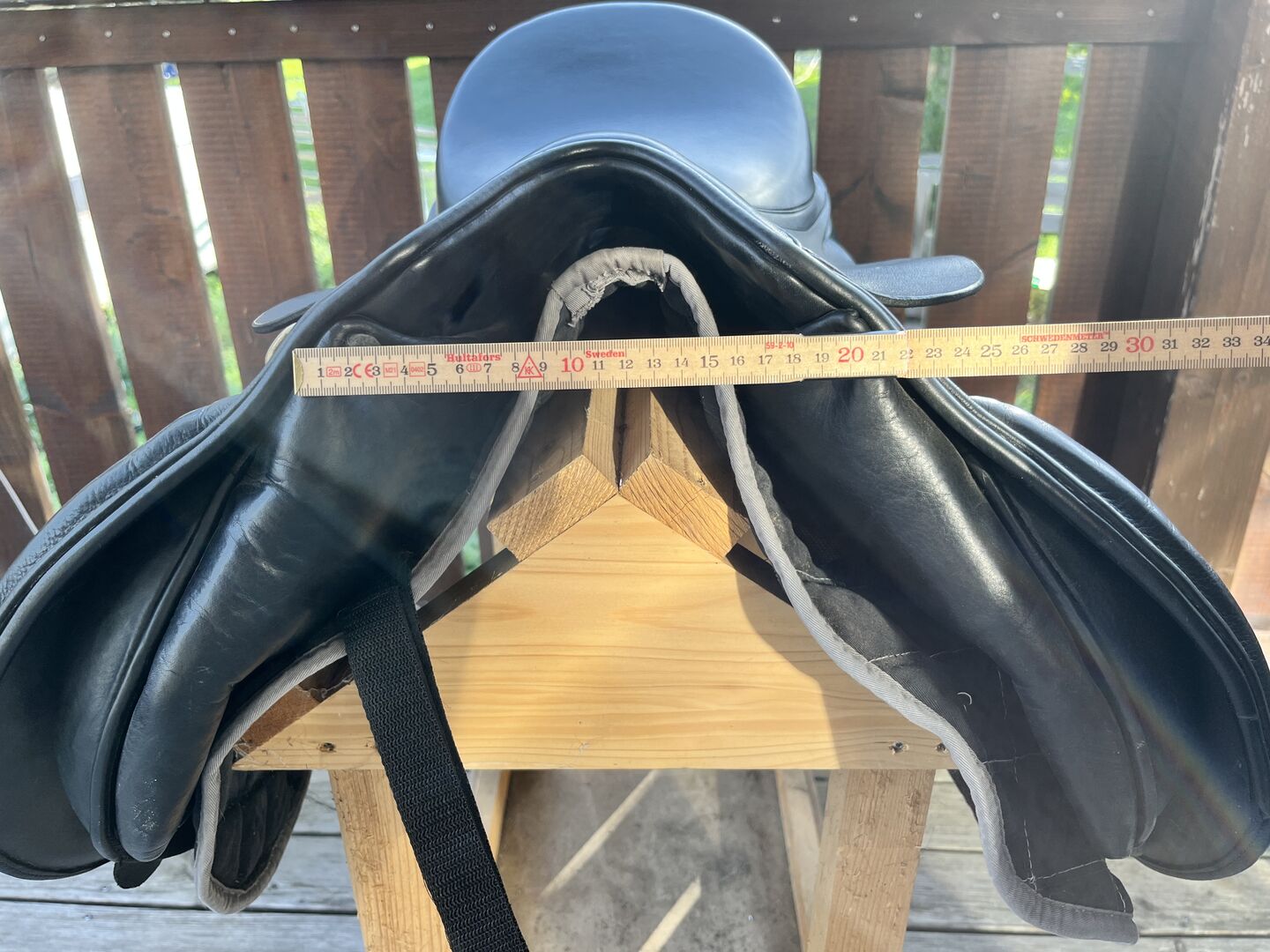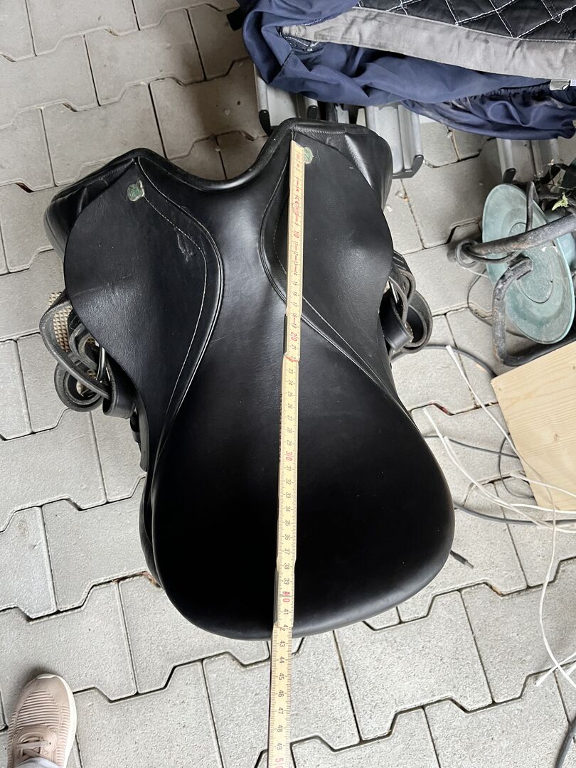 Massimo 16.5 short bearing surface - Well preserved little used Massimo VS saddle with wide chamber (KW 34) and short French panels. Lay on round 120 pony