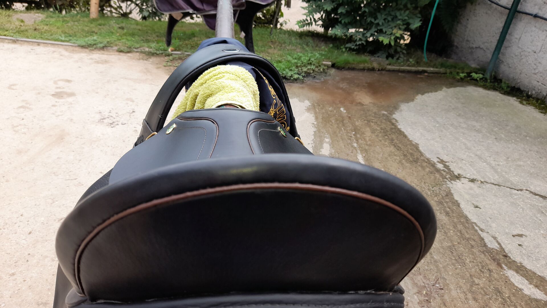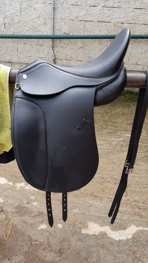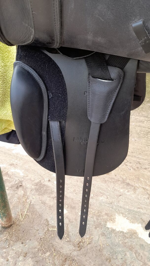 I also have a Massimo moon girth and Felix Bühler stirrup leathers. Included in the price. If you would like to have a complete package, you can also get a red dressage saddle pad for 10 eur.
