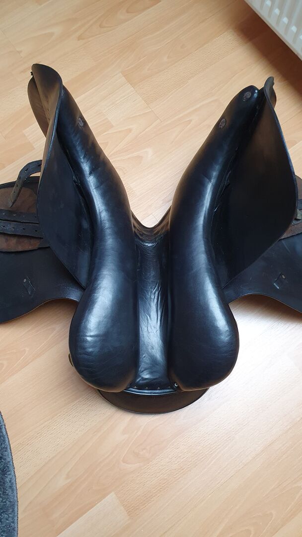 Massimo VS 18.5 inch chamber width 34/35 - I am offering my Massimo VS saddle here, it is from 2016, but I only bought it used 2 years ago and am switching back to dressage, the saddle is in very good condition and only shows signs of wear on the girth straps The saddle has French panels and the lower contact area is 42cm, so it is suitable for short backs and ideal for wide horses. If you have any questions, please contact me, the price is negotiable Lg