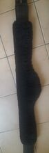 MATTES asymmetric belt 140 cm black - The MATTES asymmetrical long girth is shaped with particularly deep elbow room and a wide middle section. The girth is made of genuine lambskin for optimum pressure distribution with lambskin edging around both long edges and SOFT-EDGE to prevent pressure and chafing. The lambskin is removable. The girth is suitable for horses with a girth position that is closer to the elbow or less pronounced, where the girth tends to lie further forward. The girth is cut back considerably at the front in the elbow area. This meant that my horse no longer had any open chafing in the girth area.