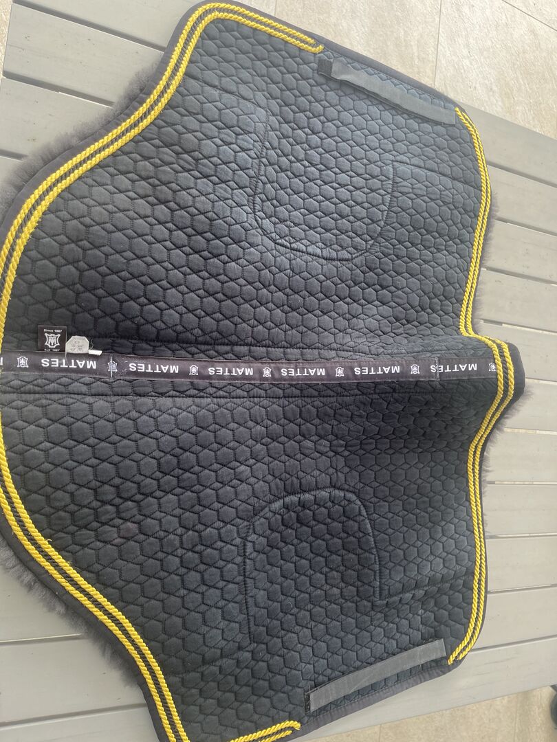 Mattes lambskin saddle pad baroque - Baroque lamb saddle pad in very good, used condition. Dark blue with yellow cord. I have used it under a Signum riding pad.