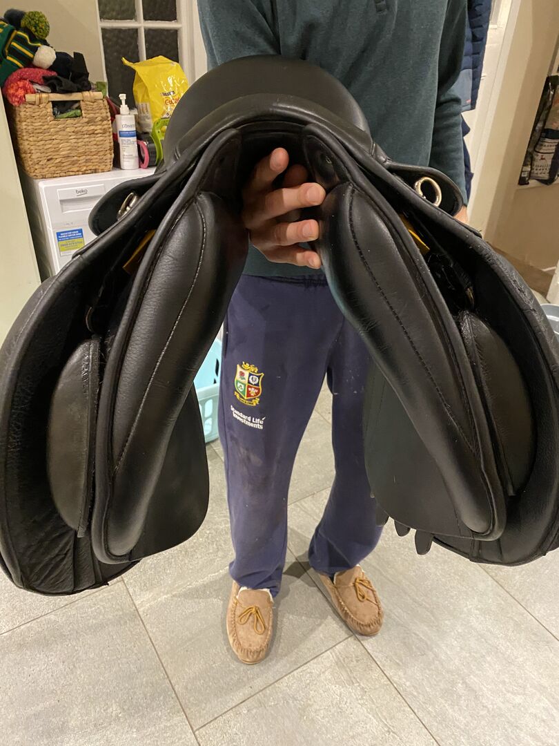 Lovely black adjustable GP saddle. Currently with wide tree fitting. Small mark on front left saddle flap. Super fit for cobs (used on cob x warmblood)