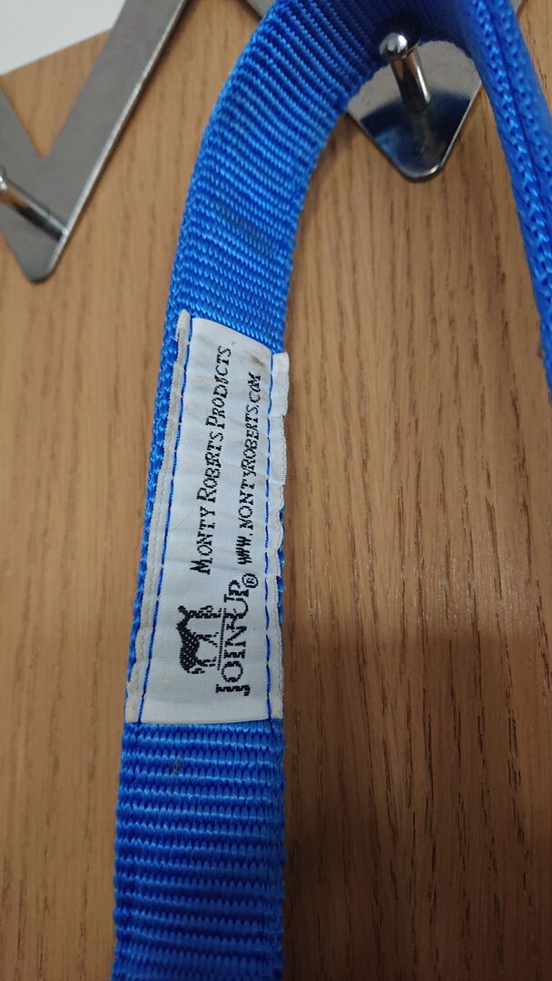 Monty Roberts Dually halter, blue - For sale blue Monty Roberts Dually training halter, hardly used, size warmblood. With CD. Matching longlines see further advertisement. Discount when buying both.
