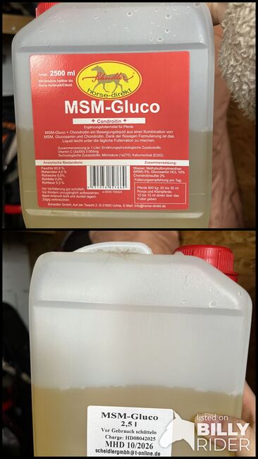Hi L. Anders, I am interested in your ad 'MSM Glucosamin Chondroitin Zusatzfutter / Scheidler 2,5 Liter'. Please contact me!