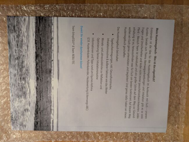 My cough diary for equine asthma - New and unused. It is a multifaceted book, with the possibility to enter the exact course of the cough and with tips