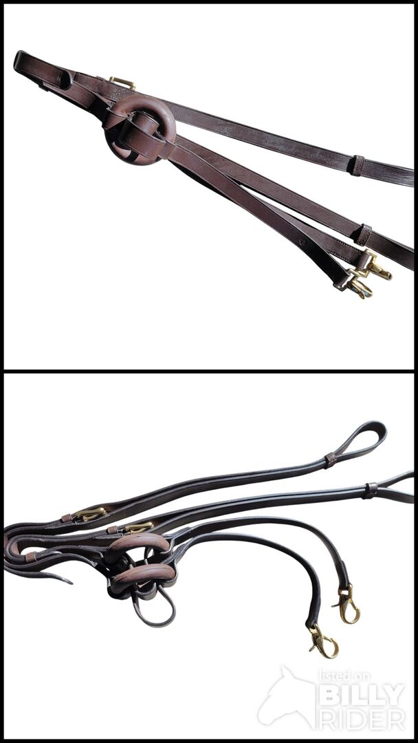 Experience the highest level of quality and comfort for your horse with our new bridle reins. Made from high-quality leather in an elegant brown shade, this bridle offers a perfect fit and is ideal for a wide range of uses. Whether for demanding training or relaxed leisure activities, the helpful reins support your horse effectively and can be used for a long time thanks to their robust workmanship. Convince yourself of the functionality and attractive appearance of our product - an enrichment for any riding equipment.