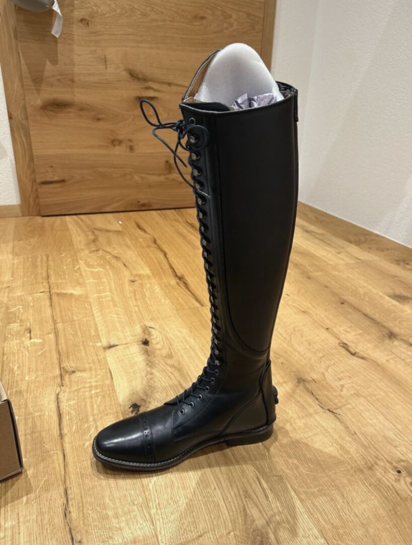 lace-up boot in the color dark blue. It has never been worn and is therefore new and in original packaging.