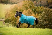 - Turnout rug made from robust, breathable 1200 D polyester - waterproof outer material protects against moisture on rainy days - the polyester lining gives the coat a beautiful sheen - a high neckline reduces pressure on the withers - with 3 adjustable belly straps for a secure fit and an optimal fit - a V-breast closure and wide leg openings offer maximum freedom of movement - reflective strips ensure improved visibility at dusk and dawn