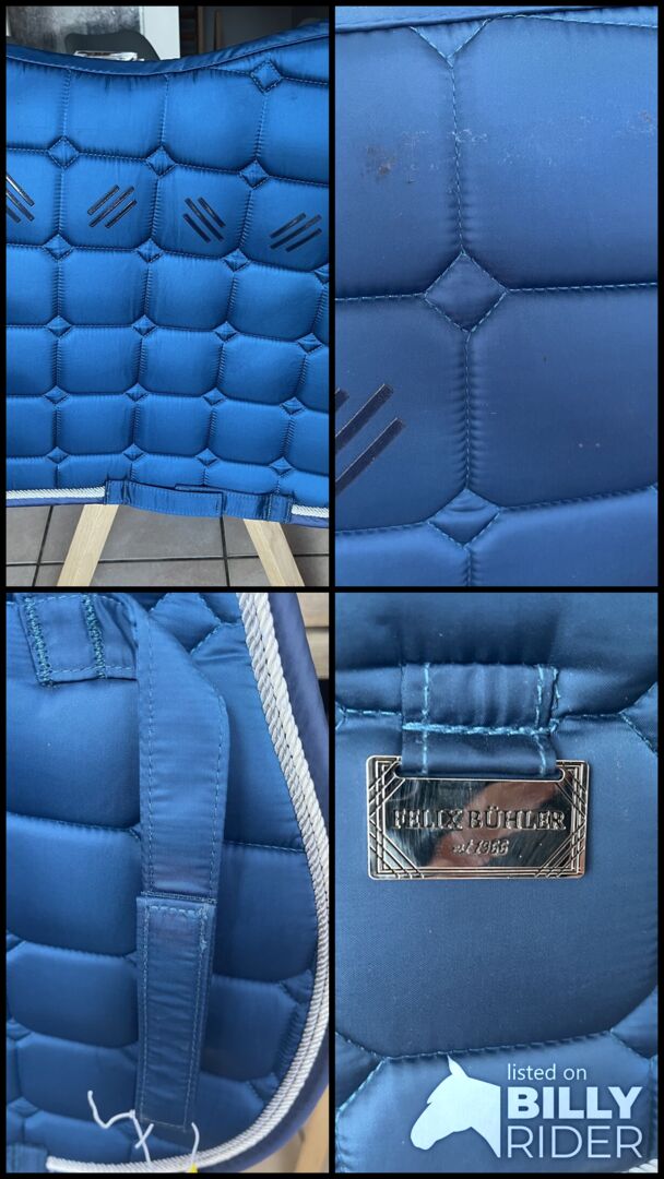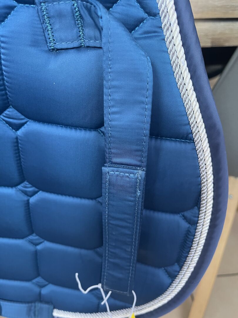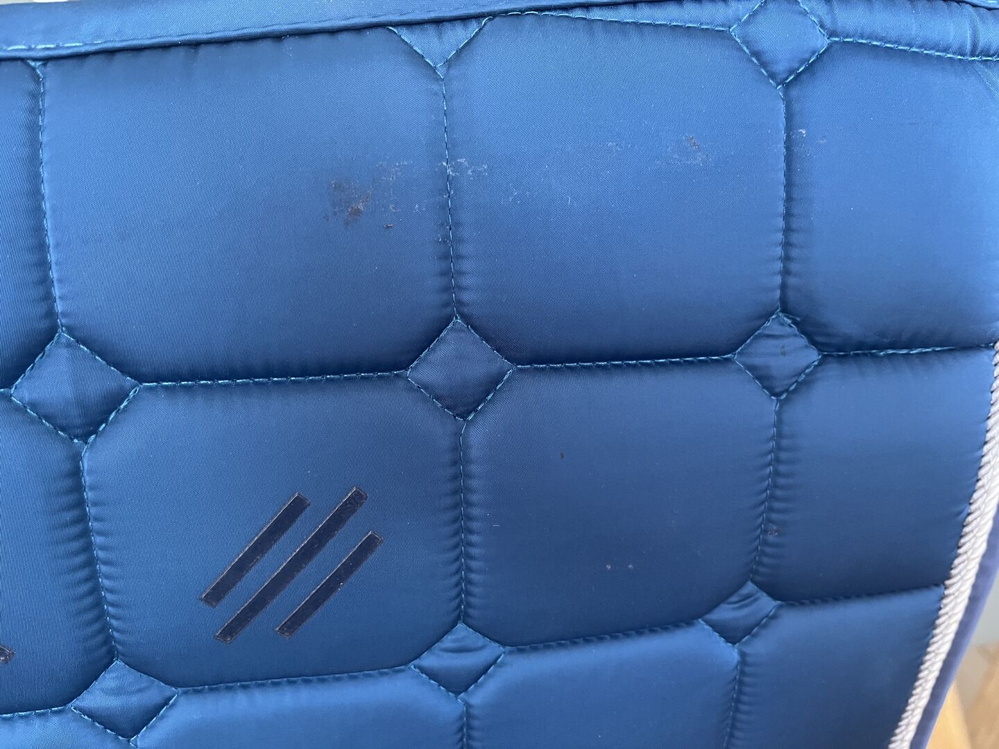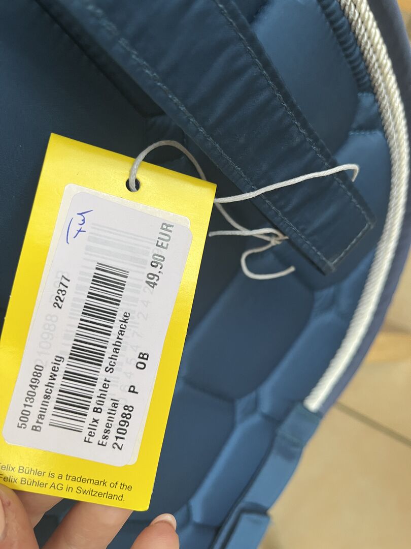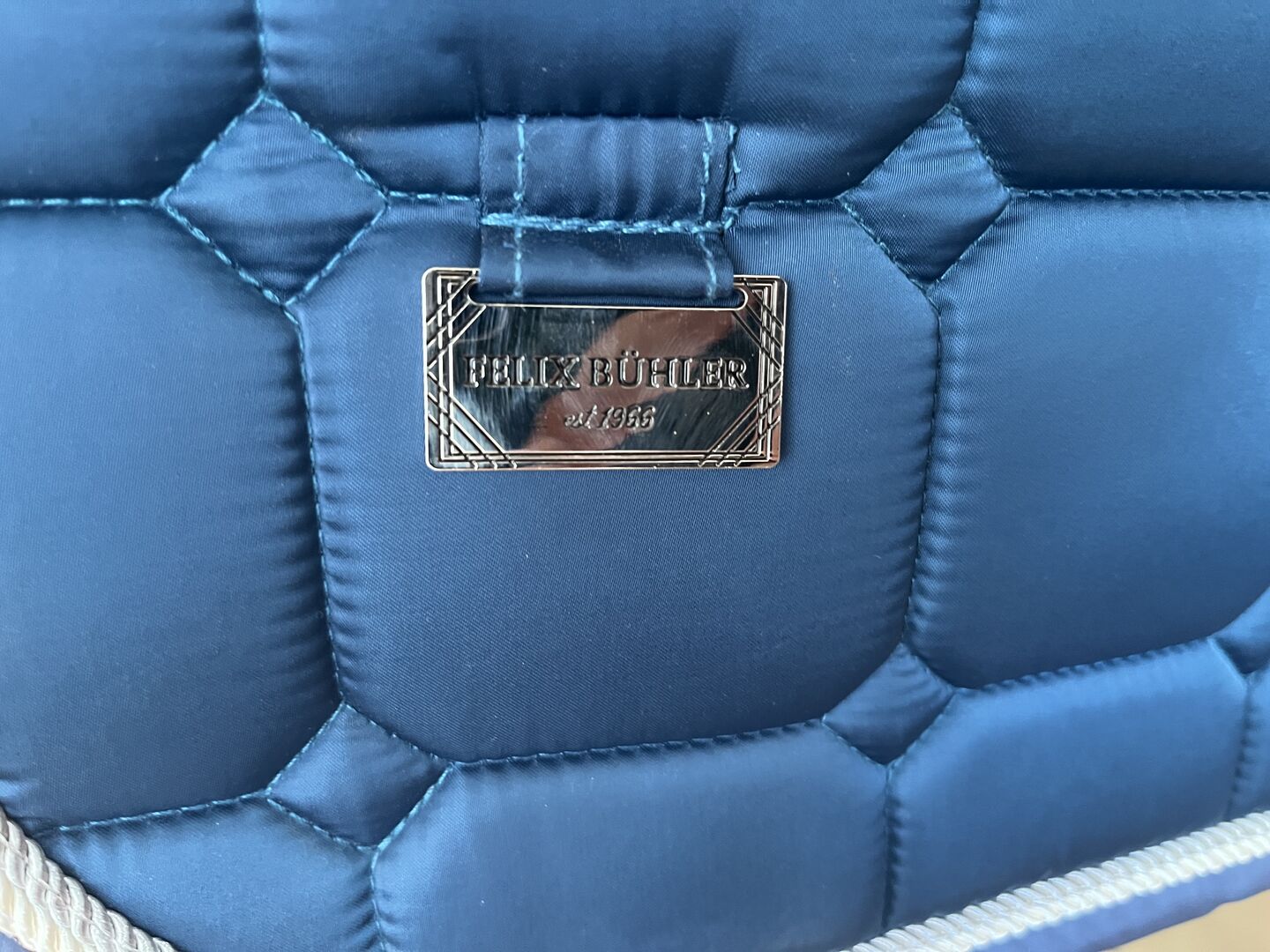New saddle pad - Felix Bühler Gr. P - I sell a beautiful new saddle pad from Felix Bühler in blue. Unfortunately, the saddle pad is too small for my pony and therefore never been in use. I bought the saddle pad myself in the sale for 45€, because this has slight pressure marks, see last picture. (My pony is a bit wider, which is why the pony size songs did not fit).