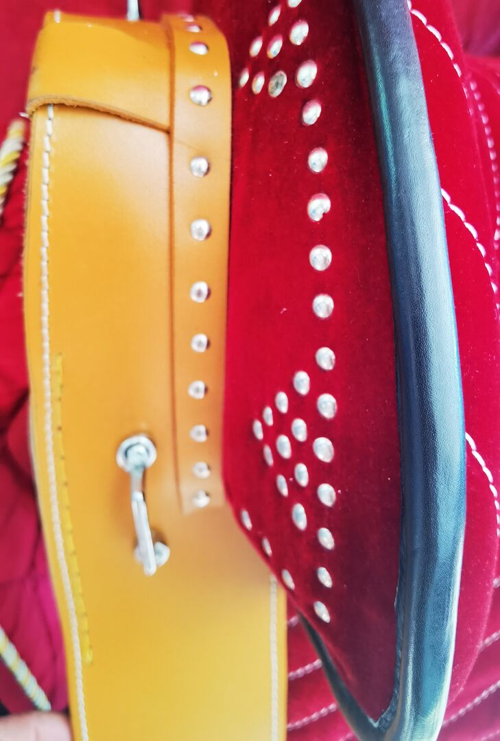 The saddle is beautiful and lay for the photos on a round short pre. Fit perfectly, but also lay great immediately on a trotter in the barn. Firm stirrup attachment 3 girth straps Price tag still drann. Beautiful soft seat. Color matching Baroqueachbracke as well as girth is free addition. Length approx 48cm Pure bearing surface : Own pelvic width (measured from front to back) plus 2 cm, so it was explained to me at the stand. Perfect for horses with short backs.