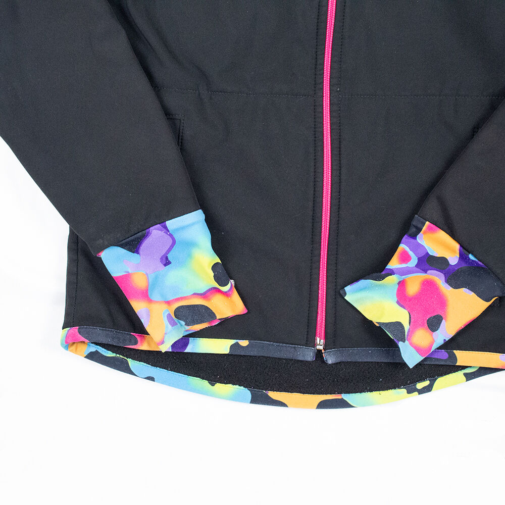 NICE ladies Stormlock black / multicolored XS - This great softshell jacket from NICE the perfect companion in everyday life. The black jacket with hood has great colorful detail on the waistband, as well as on the cuffs, hood and zipper. It is lightly lined with fleece and perfect for the transitional season. It has two pockets with zipper on the front belly and size XS. The jacket has only slight signs of use. To the seller's offerlaunch