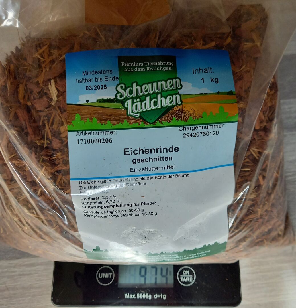 Oak bark/barnyard bark, 1kg, cut - I offer here 974gr oak bark cut, from the barn shop. Only 1 sample was taken. NP 10,28€ + 4,90€ shipping
