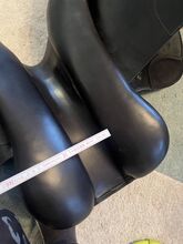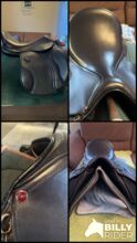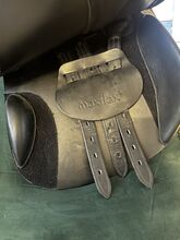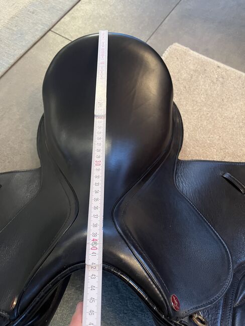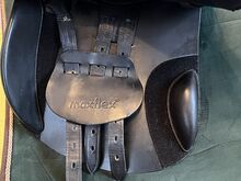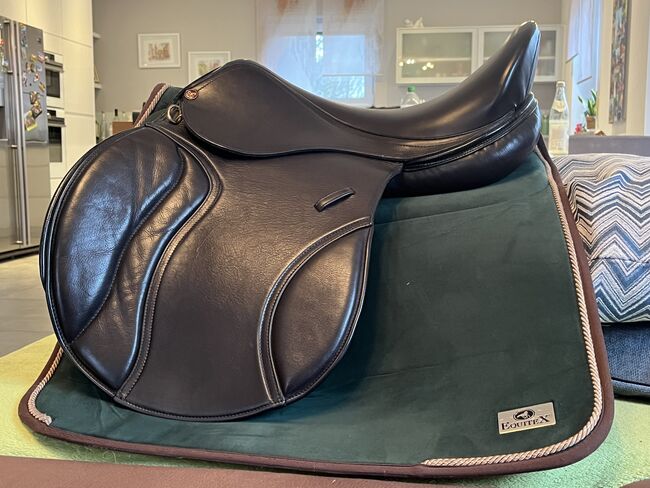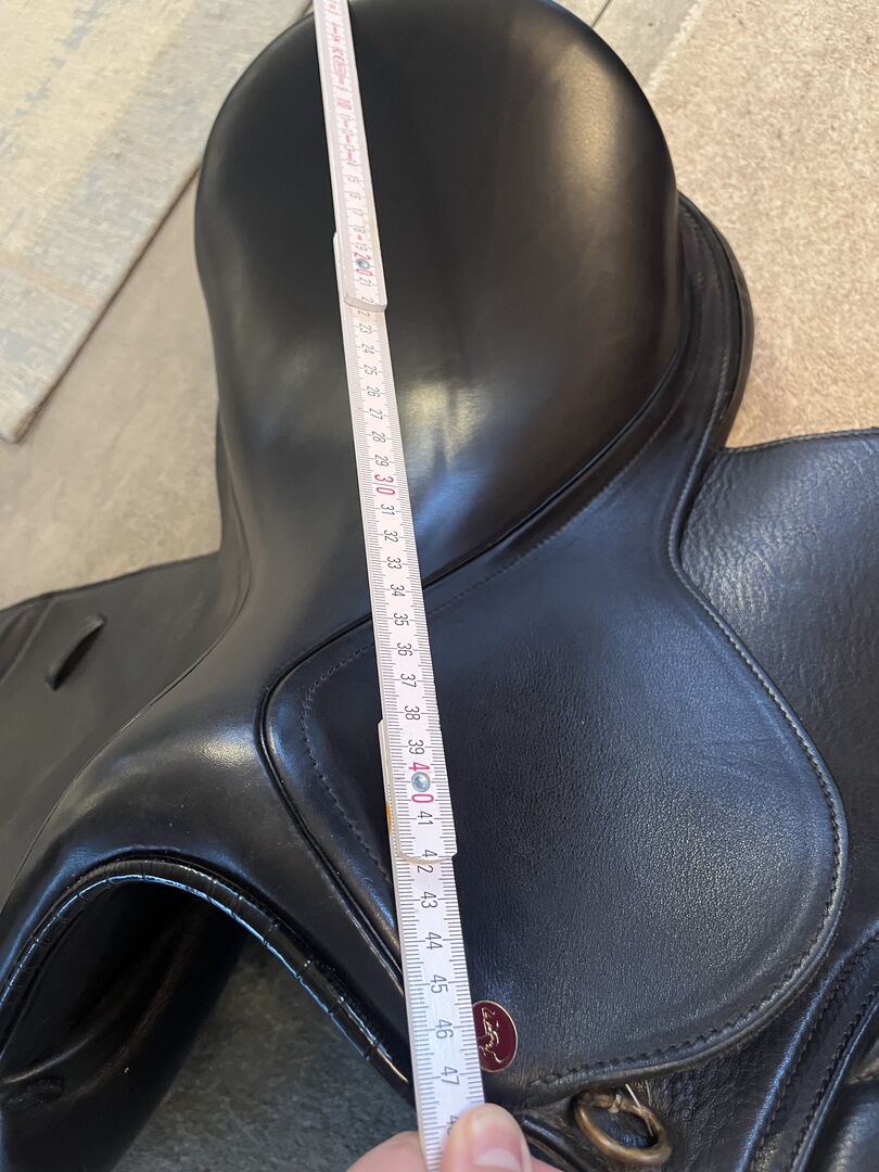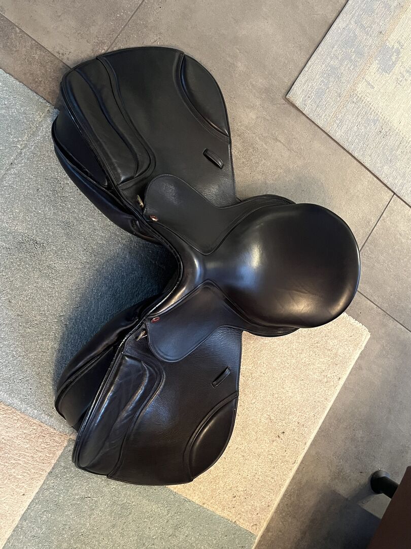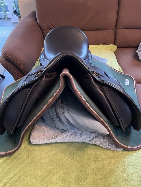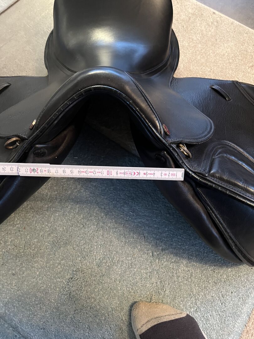 Offer little used Maxflex VS eventing saddle Ludwig 17,5 - Mega comfortable branded leather saddle from Maxflex with Velcro pads front and back, which is not only super comfortable due to its soft seat, but also offers very good support due to the grippy leather of the saddle flaps and the knee and calf pads. Very little ridden. Bought directly from saddler from stock/ sample saddle/ custom made by Bargh saddlery around 2 years ago. Only ridden a few times since then. Chamber can be adjusted by the saddler. Ridden on a rather straight horse with a normal back length. Usual very few signs of wear and soft padding with a nice wide spine channel. Gullet width cold adjustable by the saddler. I think the pictures speak for themselves. Please note that due to the incidence of light, slight reflections can sometimes be seen. The saddle is little used and in good condition, technically flawless and ready for immediate use. See photos for dimensions. Lacquer decoration with structure on the front pommel and rear.