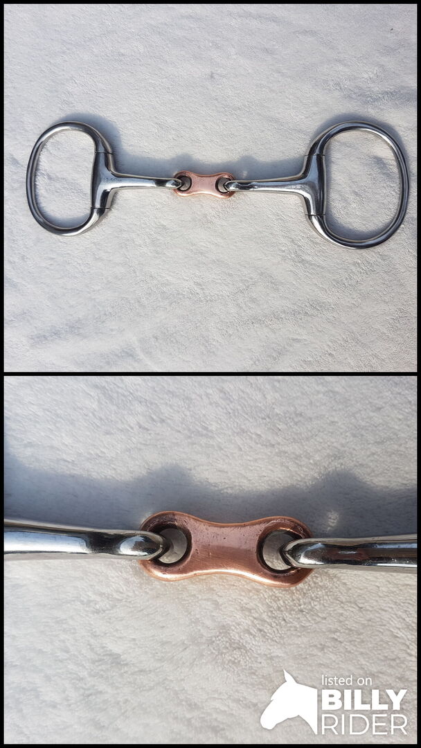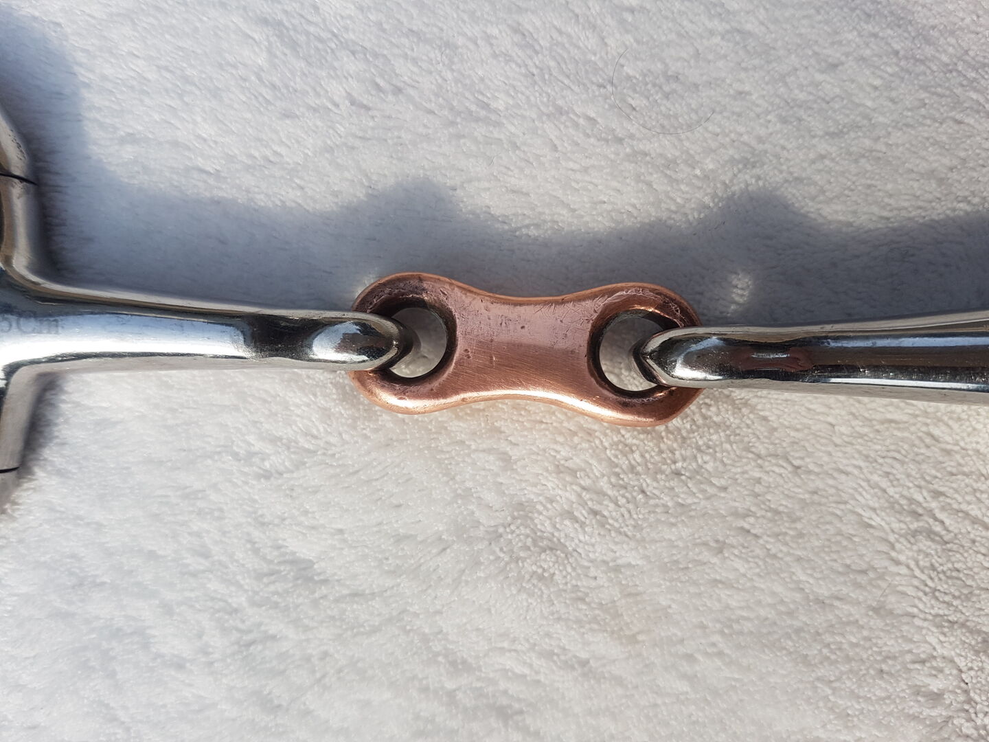 Olive head bridle with copper centerpiece, 12,5 - Double-broken olive head bit with copper platelets in the middle. Size 12.5.