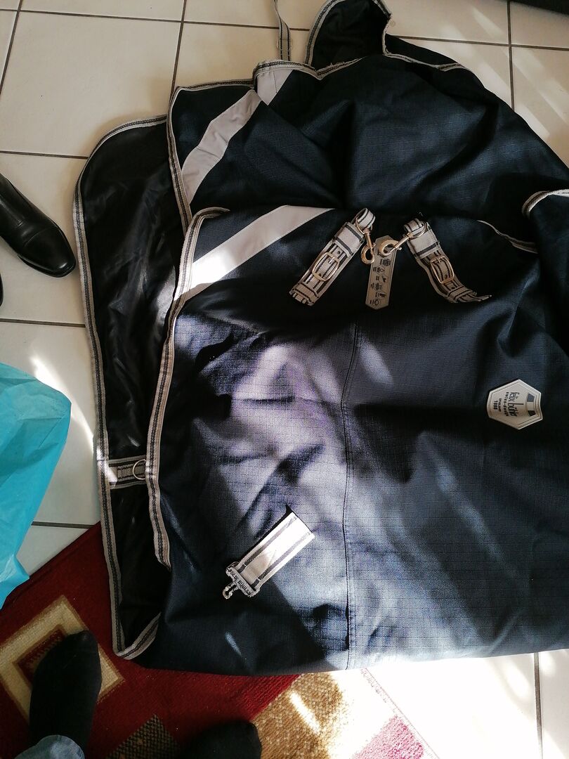 Outdoor pasture blanket Felix Bühler 165cm black - Give this blanket off because it does not sit well on my horse. It is not well suited for horses with a deep neck. It always went on the front. Velcro would probably have to be renewed. Was not even 3 months in use. NP 149€ shipping as well as pickup possible