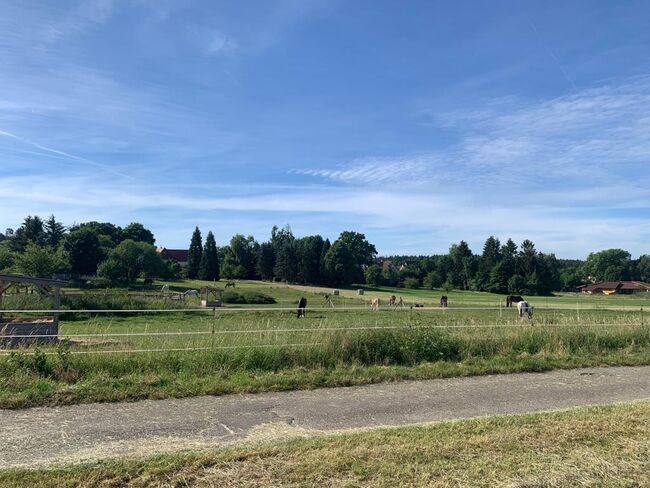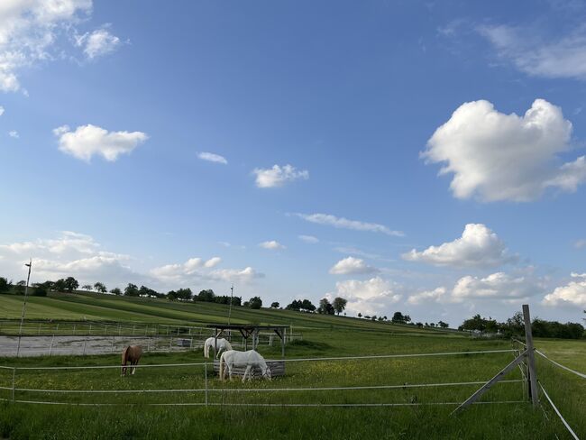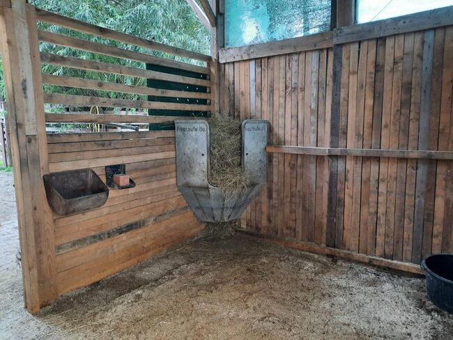 Paddock boxes in a quiet horse boarding facility - In our small (10 paddock boxes, bedding high-quality wood flour - lung-friendly - very absorbent) family stable there are still boxes available in various sizes. Individual care with partial or full board possible. Paddock and blanket service included. Allocation of mash (pensioners, ...) possible. Depending on the weather, daily turnout on paddocks/places in matching groups. Individual paddock possible. For horses with metabolic disorders, deer horses, shetties, ... exercise possibilities can be created. The following are available: Exercise area (40x23m, crushed sand, can be used all year round), round pen (ø16m), grooming areas in the covered courtyard and outside area (with shower facilities), locker room, tack room, feed room, lounge, barbecue area, dog kennel. Price depends on horse/box size and additional booking.