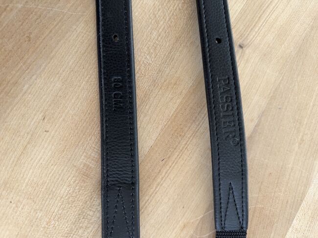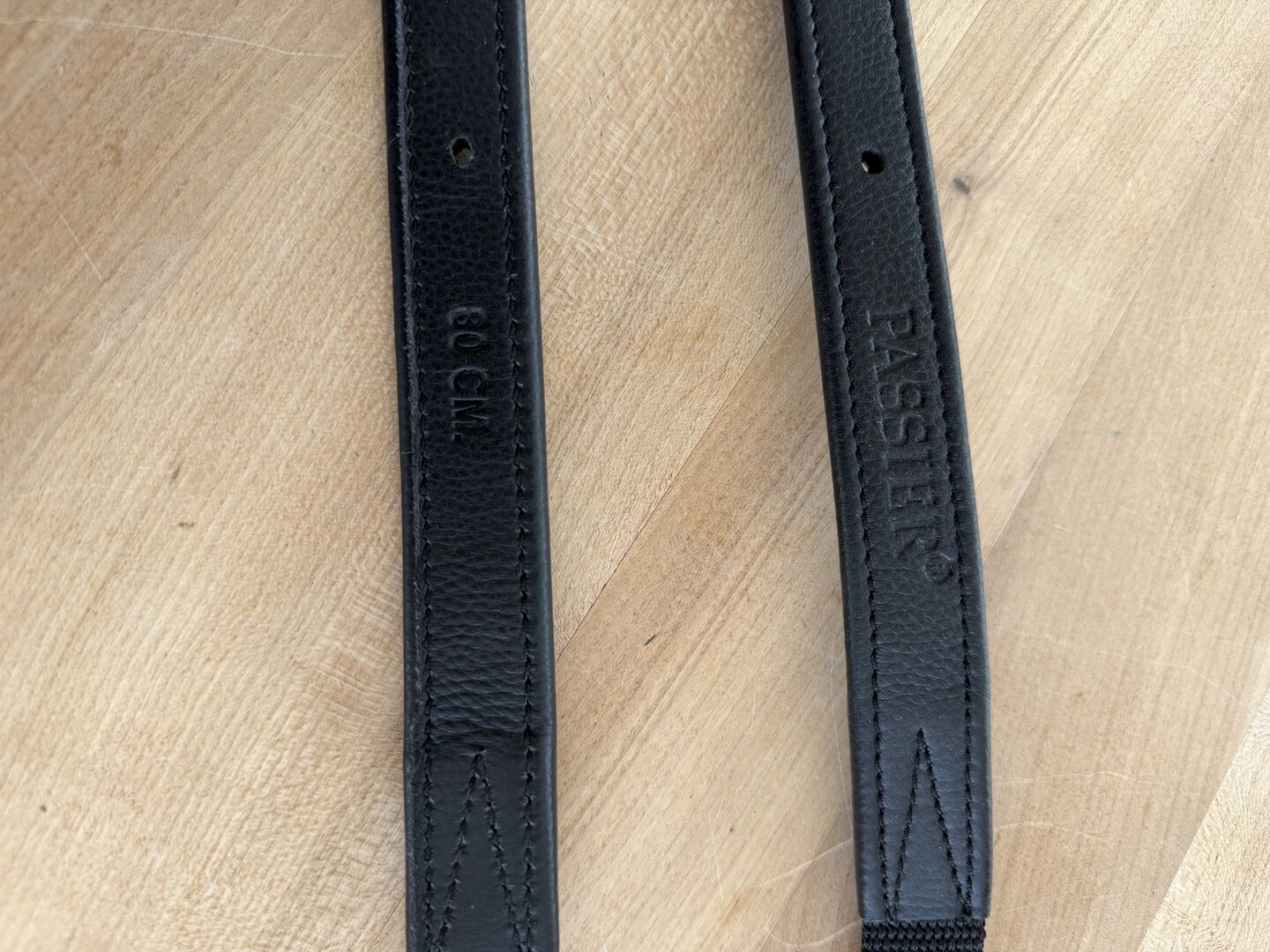 The particularly narrow and soft mono stirrup leathers from PASSIER have a particularly flat suspension and are not double in length. They are therefore not really noticeable either under the saddle flap or under the rider's leg. Made of European cowhide with nylon inlay for particularly high stability. This means that the straps cannot warp, even under heavy use. In addition, the 'Velvet Touch' leather makes the stirrup leathers particularly soft. The specially shaped stainless steel buckles ensure smooth guidance and are protected by a soft leather cover. Thanks to seven holes with extra fine hole spacing, the length can be adjusted particularly precisely. They can be easily attached to the stirrup leathers on the saddle. They also have a hole at the top so that they can be buckled up when not in use.