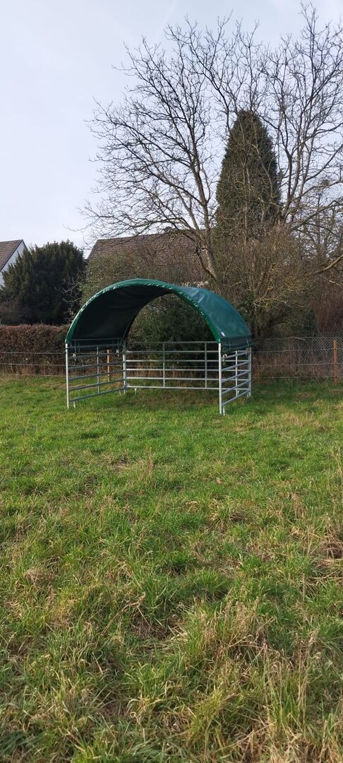 Pasture tent 6 months old - Sell my unused pasture tent we have built it, but our horses were then no longer on this meadow. Since we now change the stable, we would like to sell it. It is 3.6m x 3 m with down Rolllbare side walls (windbreak) and 8 pegs. The tent would have to be dismantled and picked up yourself.