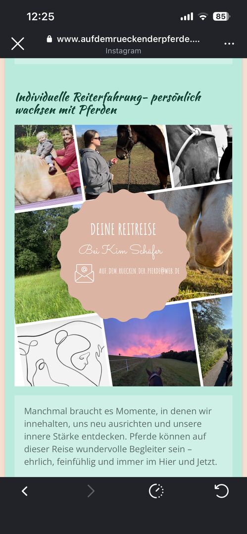 You design your own individual journey: - Duration & intensity - You decide the length of your stay. - Lessons - Up to three personal training sessions per day are possible, tailored to your wishes and learning goals. - Versatile content - From ground work and fine communication to seat training and conscious riding. (Riding therapy, communication training, ground work training & riding lessons possible)
