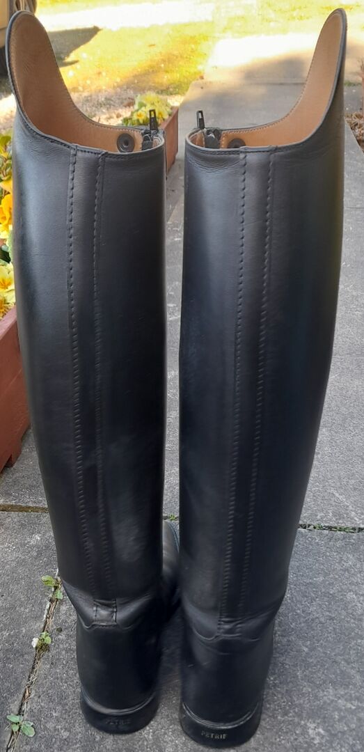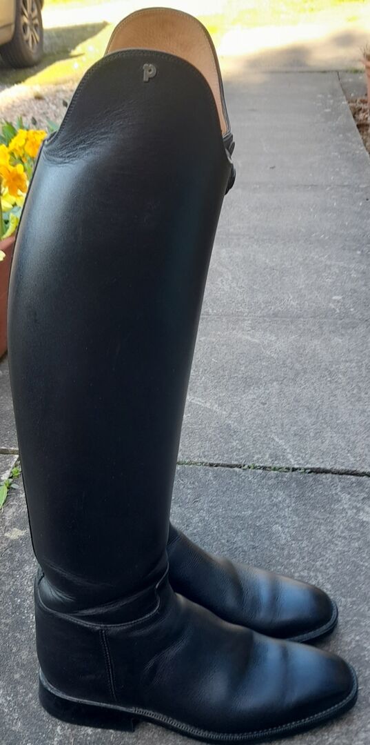 These boots have had little wear as giving up horses. Zips in excellent condition. Very comfortable boots to wear and elegant when riding with high bow at the side