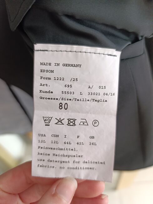 Pikeur EPSOM competition jacket - Rarely worn show jacket EPSOM by Pikeur in size 80 (40 long) for sale. Almost like new, no major signs of wear