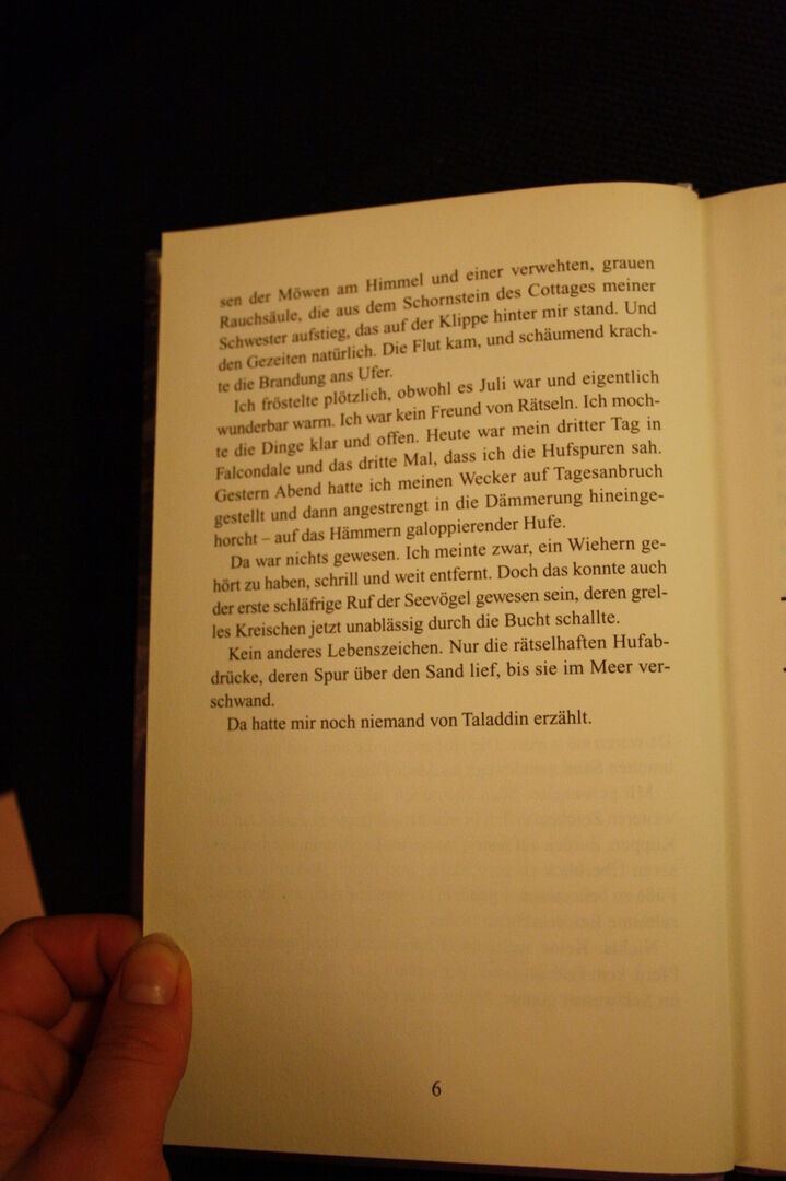 "Since her parents split up and she sold her beloved pony, fourteen-year-old Ceri hasn't had much to smile about. That changes when she spends the holidays in Falcondale with her sister Leonie and meets Joel, a boy fisherman. But strange things are happening in Falcondale. What is it about the ghost horse Taladdin that the old fisherman tells her about ? Who are the hoofprints that just disappear into the sea ? And Joel is also starting to behave strangely.... Then, during a terrible storm, a precious young mare escapes from the stable where Ceri's sister works, and events come to a head..."
