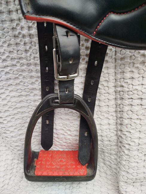 Prestige Atena EVO Fender, 17 inch - For sale: Endurance trail riding saddle Prestige Atena EVO Fender 17 inch In black with red stitching and piping Large contact surface with shoulder clearance Weight: 7.4 kg