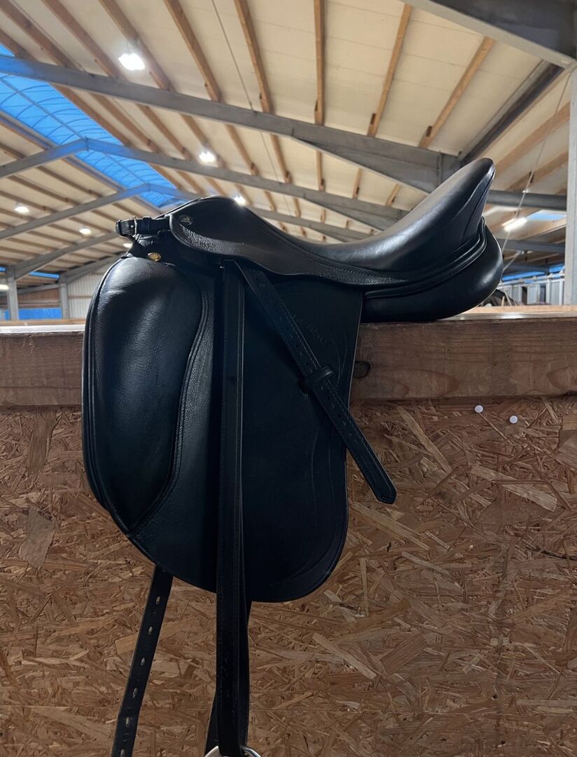 Sell my hardly used Prestige Bergamo dressage saddle with doubled leather. The saddle is 17 inches tall and has a chamber width of 33. You have a very deep Seat and it is super comfortable. Saddle passport is available, the saddle was bought in 2022 and hardly used due to the illness of my horse . The original price is 2800€