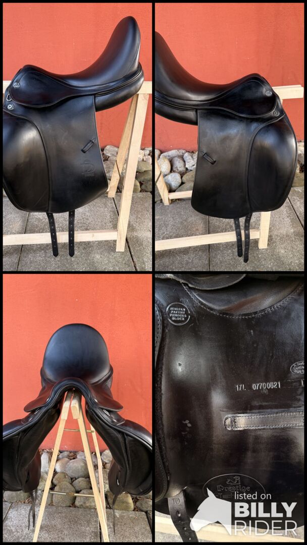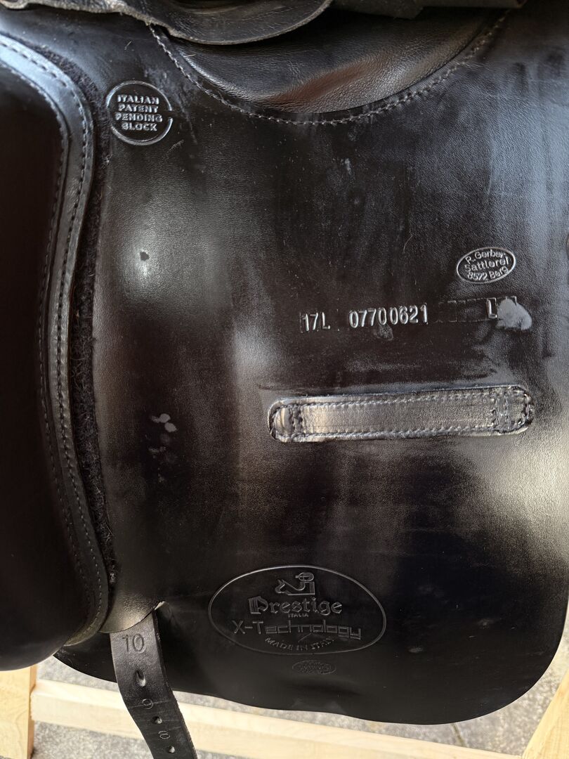 Prestige dressage saddle XD2 17" double flap (long) - The saddle is practically in mint condition and has hardly any wear as it was only used for about six months due to an injury. It has a long saddle flap and the wool panels have been professionally fitted to the horse's back.