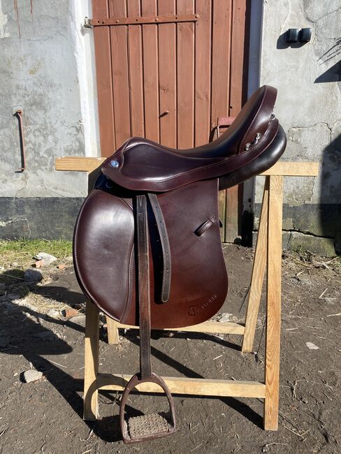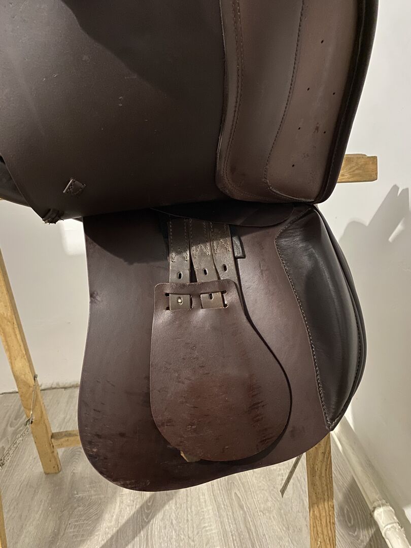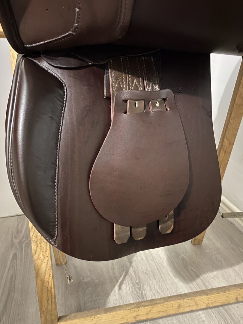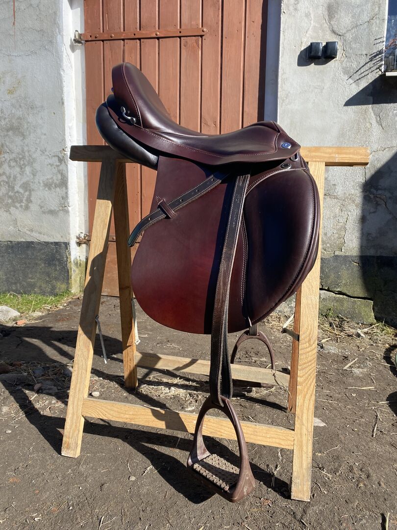 I have for sale the Prestige Italia Explorer 2 saddle in Tabacco color. This is a versatile saddle with an endurance profile. Very comfortable, soft seat. Cowhide leather, wool panels. The shoulder width is 34, the seat is 17 inches. I bought the saddle new in October 2024. Used occasionally, well cared for. Minor signs of use visible. Perfect condition. I add the original cover to the saddle.