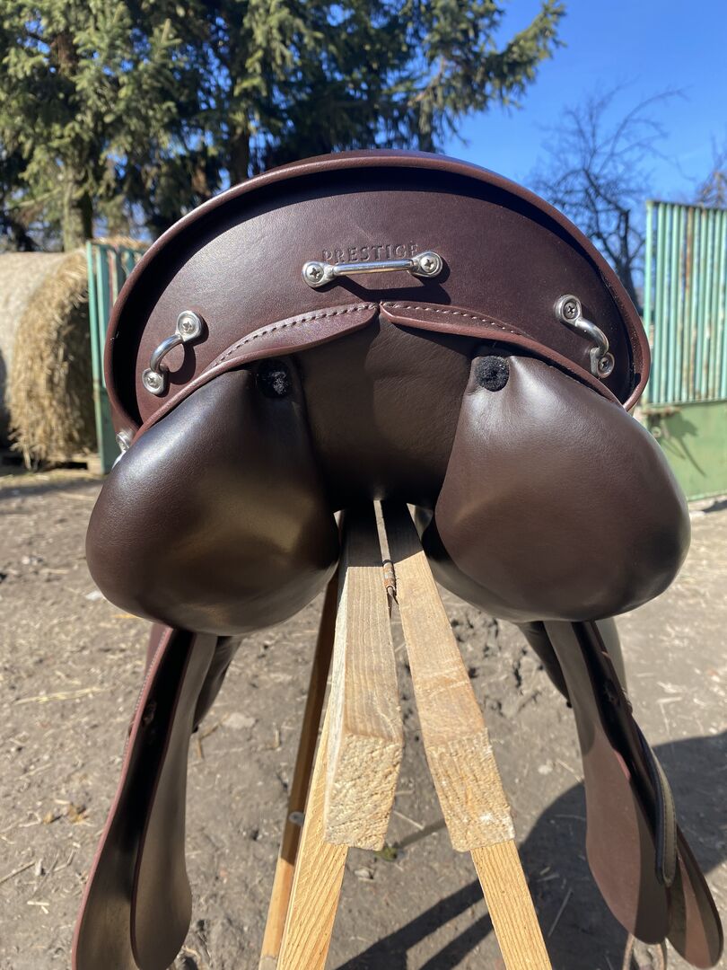 I have a Prestige Italia Explorer 2 saddle for sale in Tabacco color. It is a versatile saddle with a rally profile. Very comfortable, soft seat. Cowhide leather, wool panels. The spacing is 34, the seat is 17 inches. I bought a new saddle in October 2024. used sporadically, well-kept. Visible slight traces of use. Perfect condition. I add the original cover to the saddle.