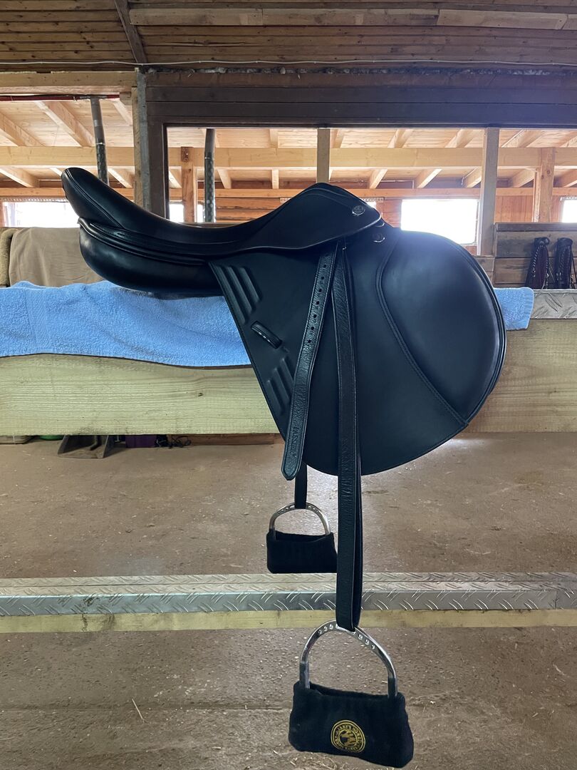 I am selling my Prestige Synchrony CPS in 18 inch chamber 33. It was bought new in mid-2023 and has only been used a little. Invoice is available. NP: 4000 Euro. The saddle is very comfortable and has the Prestige CPS system which provides more cushioning and comfort. My young horse has grown and the saddle no longer fits him. The panels were recently replaced. The rear knee rolls are included and can easily be sewn back on. Please get in touch if you have any questions or are interested 😊