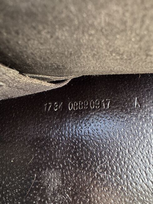 The saddle is black and is made of nappa leather. It is a 17/34 from 09/17, so the saddle is less than 9 years old.