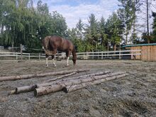 Trav is currently being trained in a variety of ways, whether under saddle or on the ground. Until recently he was still shod at the front. He is currently barehoof and works well with his good hoof quality.