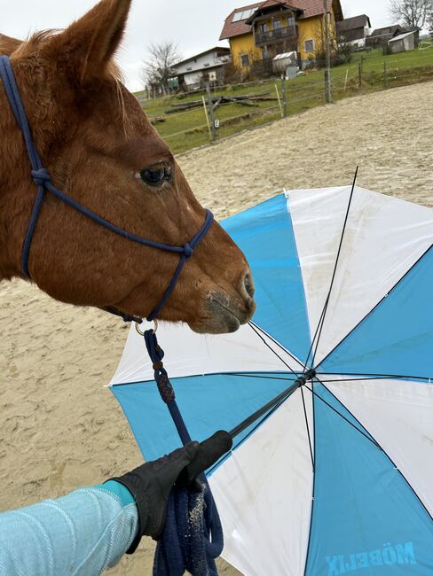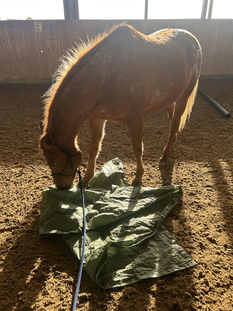 Dreamy is not a horse for beginners or insecure riders! She needs a person who communicates clearly with her and gives her security. Then she shows herself to be strong-nerved, reliable and willing to work.