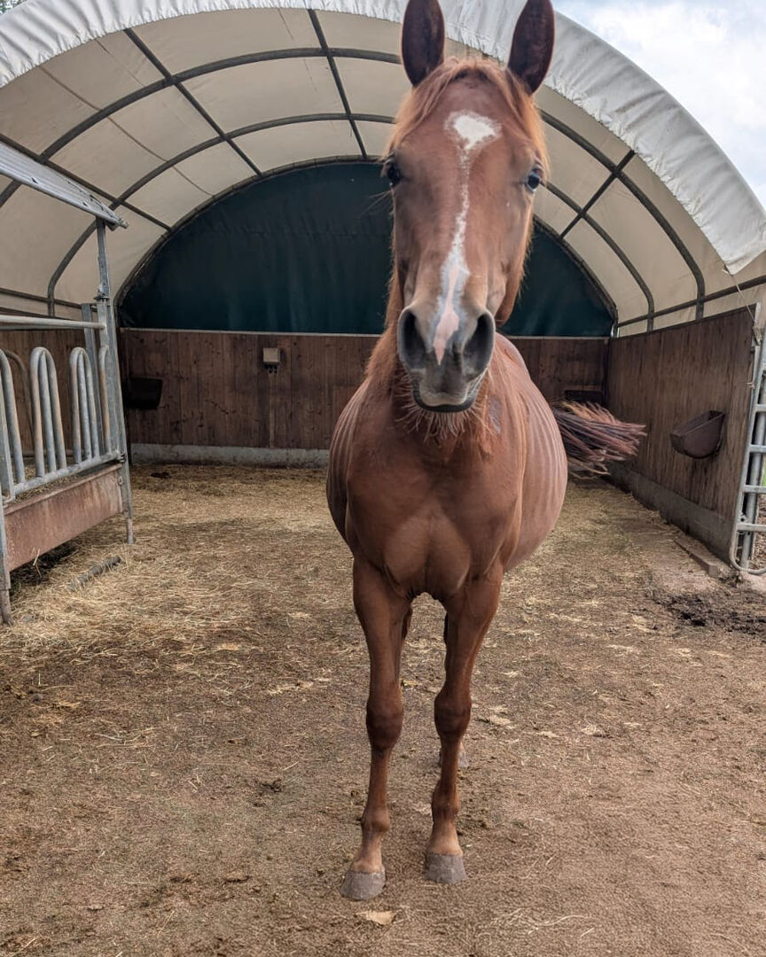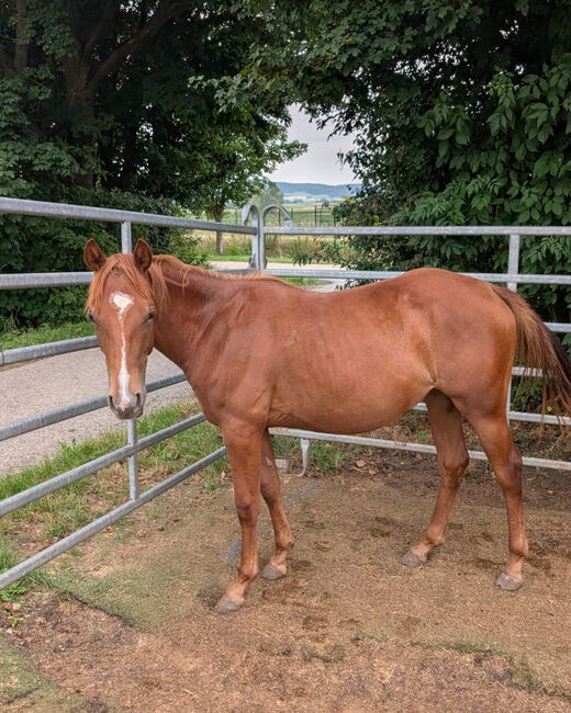 Kitty Metallic Cat - an extremely promising Quarter Horse mare, born 4.2024, with an estimated final height of 150 cm, with a first-class pedigree - a real gem for show, leisure and breeding! This youngster impresses with correct conformation, plenty of foundation and good muscling. She has grown up in a herd and knows both open stabling and grazing. Kitty's character leaves nothing to be desired: People-oriented, friendly, bright, curious and cuddly. She is handled regularly, knows the foal-1×1, can be tied up calmly and is always cooperative in daily handling. A real eye-catcher with great movement - a top prospect for the cutting sport! Kitty has all the prerequisites to develop into a successful show horse or reliable leisure partner - also very interesting as a breeding horse. She is a granddaughter of Metallic Cat and Smooth As A Cat. Her sire is the successfully shown Titanium Toy. Due to a reduction in the herd, this treasure is being sold with a heavy heart.