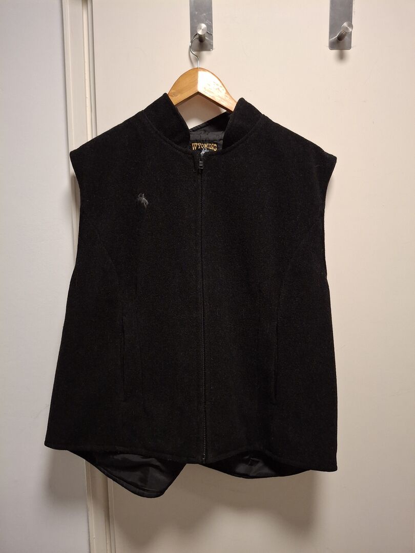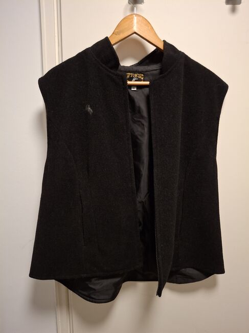 ranch riding, vest, buckaroo - Offer a wonderfully warming ranch riding vest made of 680g pure Australian wool (100% virgin wool) from Wyoming Traiders USA, naturally water-repellent, elastic insert in the back for a better fit, two side pockets to keep your hands warm. NP 119€ For sale due to heavy weight loss.