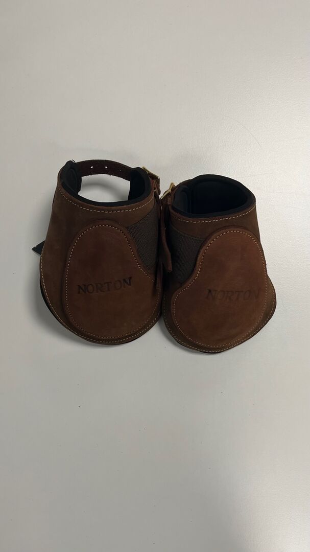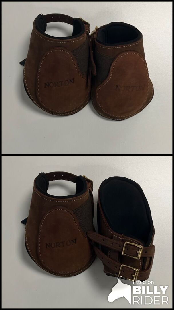 Rear gaiters - Riding gaiter for rear with soft neoprene lining in black and firmer buffalo leather in brown outside. The gaiters have a closure with buckles and a sturdy elastic band for a good grip.